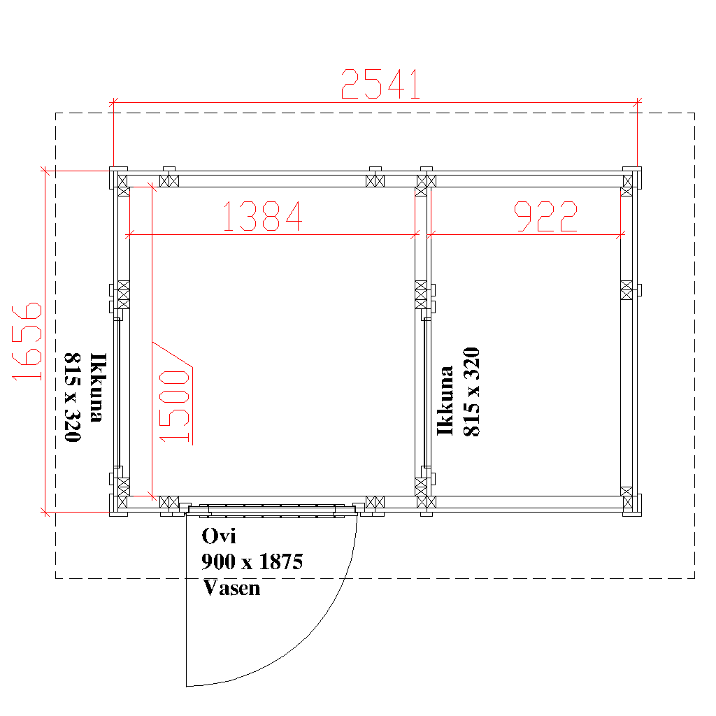 Kattava puuosatoimitus sisältää kaiken, mitä pystytykseen tarvitset: materiaalit, kiinnikkeet ja ohjeet. Rakennus toimitetaan oletuksena ilman vesikatetta, jotta saat kaiken valmiiksi kerralla, valitse sopiva katemateriaalimukaan tilaukseen oheisesta valikosta. Puuosat ovat ilman pintakäsittelyä, joten voit maalata tai käsitellä rakennuksen täysin oman makusi mukaan.