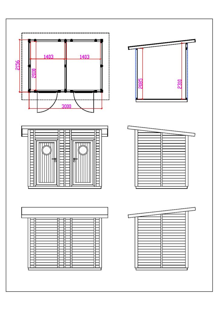 Kattava puuosatoimitus sisältää kaiken, mitä pystytykseen tarvitset: materiaalit, kiinnikkeet ja ohjeet. Rakennus toimitetaan oletuksena ilman vesikatetta, jotta saat kaiken valmiiksi kerralla, valitse sopiva katemateriaalimukaan tilaukseen oheisesta valikosta. Puuosat ovat ilman pintakäsittelyä, joten voit maalata tai käsitellä rakennuksen täysin oman makusi mukaan.