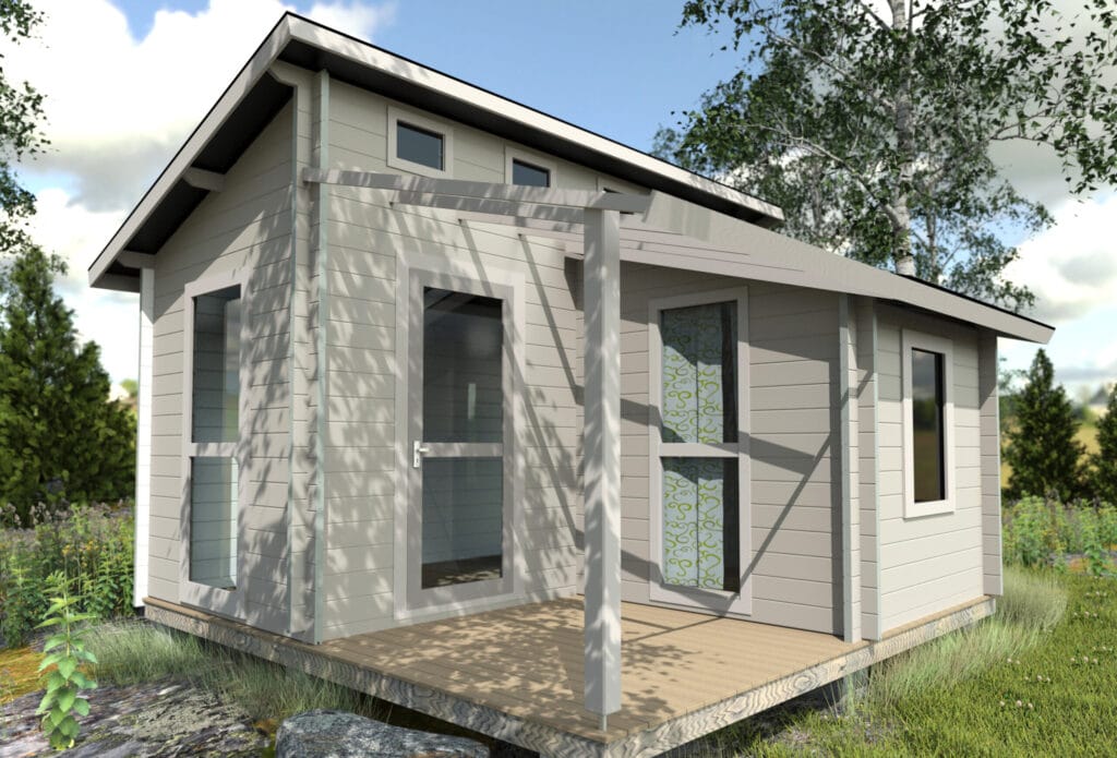 Kattava puuosatoimitus sisältää kaiken, mitä pystytykseen tarvitset: materiaalit, kiinnikkeet ja ohjeet. Rakennus toimitetaan oletuksena ilman vesikatetta, jotta saat kaiken valmiiksi kerralla, valitse sopiva katemateriaalimukaan tilaukseen oheisesta valikosta. Puuosat ovat ilman pintakäsittelyä, joten voit maalata tai käsitellä rakennuksen täysin oman makusi mukaan.