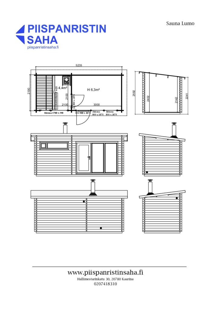 Pihasauna Lumon peruspaketti sisältää kaikki piharakennukseen kuuluvat puuosat erikseen tilattavia lauteita lukuun ottamatta. Peruspakettiin kuuluvat myös kaikki ovet saranoineen ja lukituksen mahdollistavine lukkorunkoineen sekä ikkunat avausmekanismeineen valmiiksi lasitettuina ja heloitettuina.
