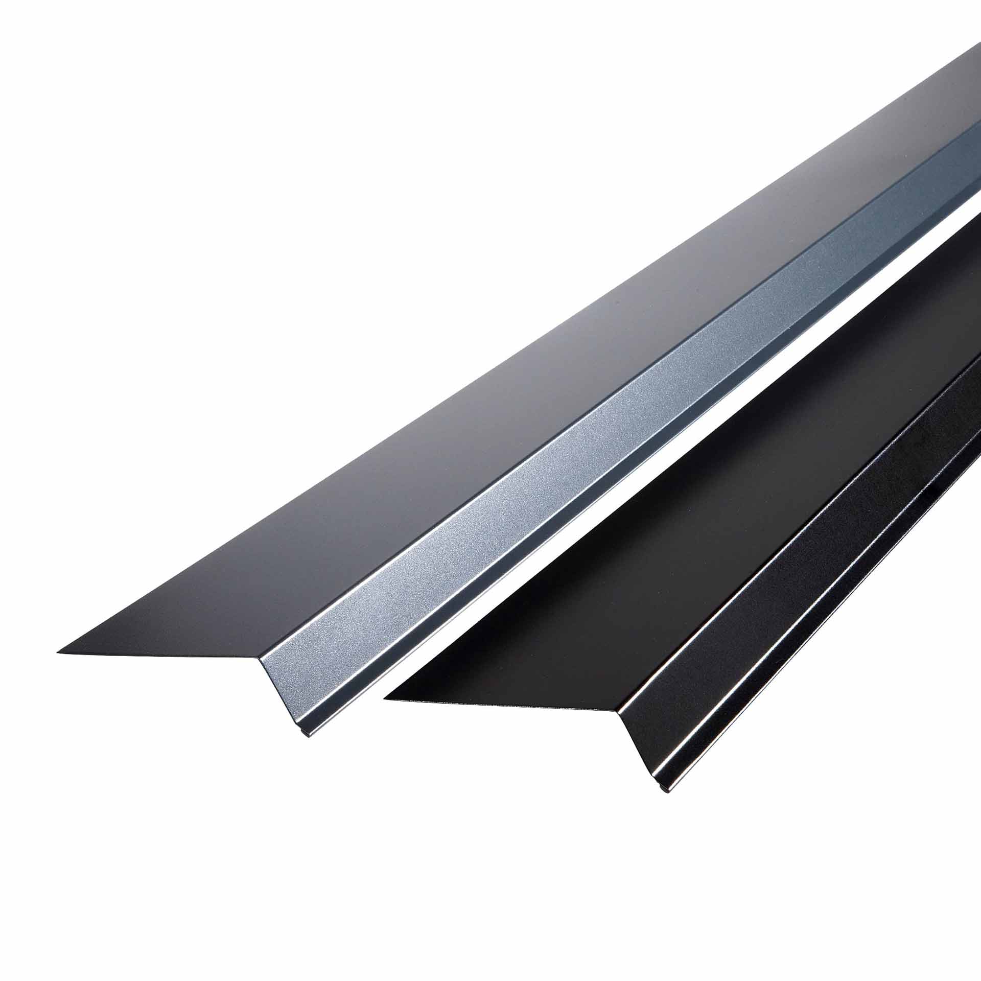 Musta räystäspelti. Peltien pituus on kaksi metriä.