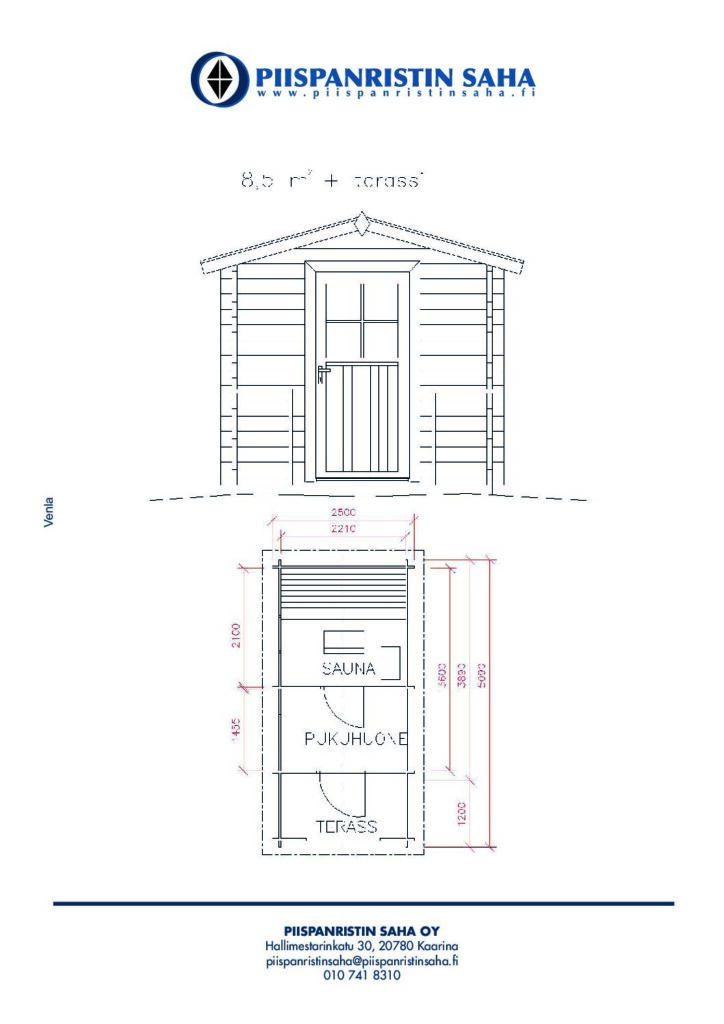 Sauna Venla edustaa Piispanristin Sahan perinteikkäämpää harjakattoista saunamallistoa. Venlassa saat itse saunaosan lisäksi pienen pukeutumistilan ja mukavan terassin. Pitkäikäinen suosikkimme on 8,5-neliöinen piharakennus, joka istuu niin mökkirantaan kuin talon takapihallekin.Kaikki Venlan puuosat ovat Kaarinan tehtaillamme valmistettua kevythirttä, jonka raakamateriaaliana käytämme kestävää ja vahvarakenteista kotimaista kuusta.